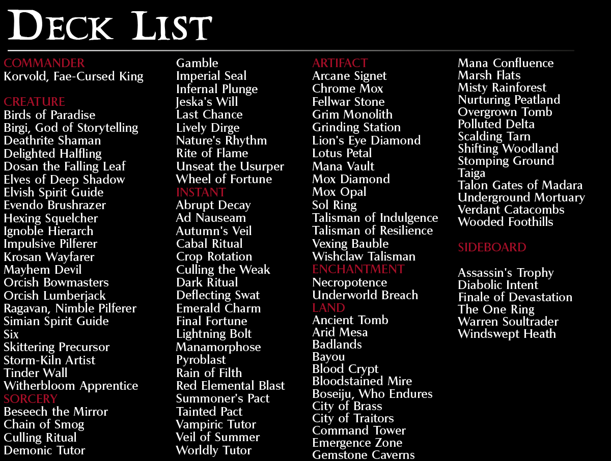 Korvold cEDH, where every permanent is a resource, and every sacrifice brings you closer to victory.