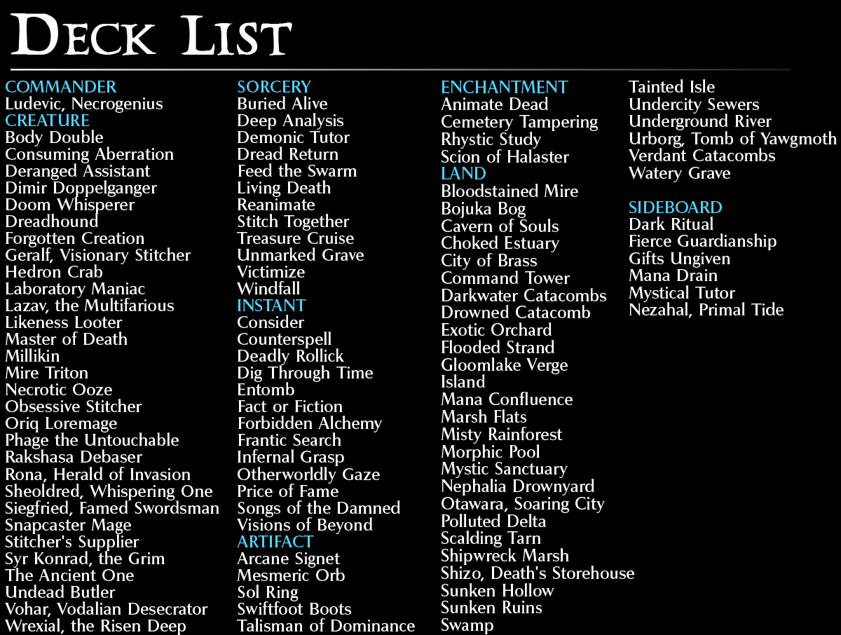 Ludevic Reanimator – EDH Commander Proxy Deck