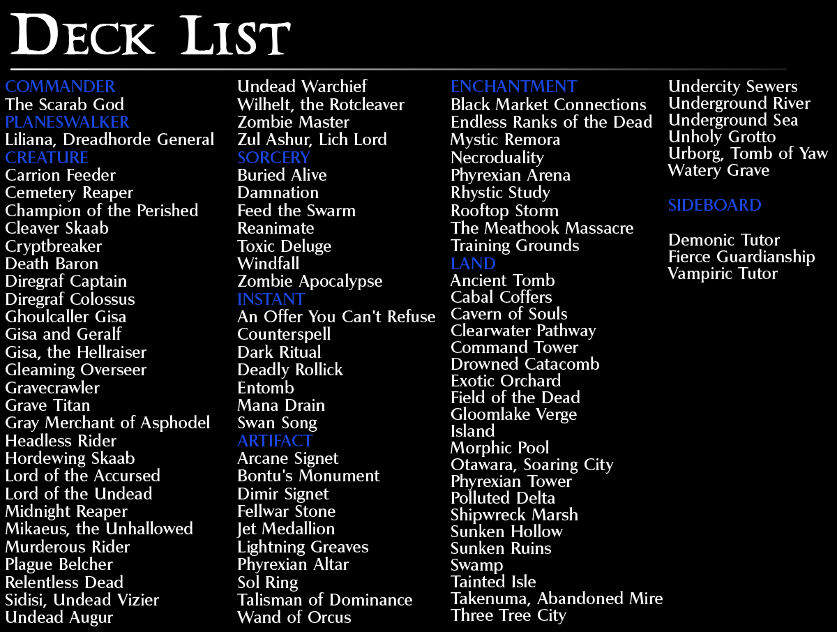 The Scarab God Zombies – EDH Commander Proxy Deck